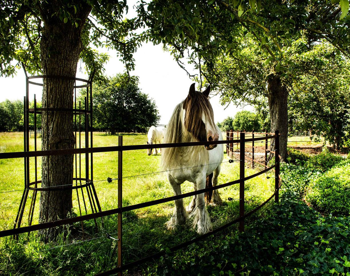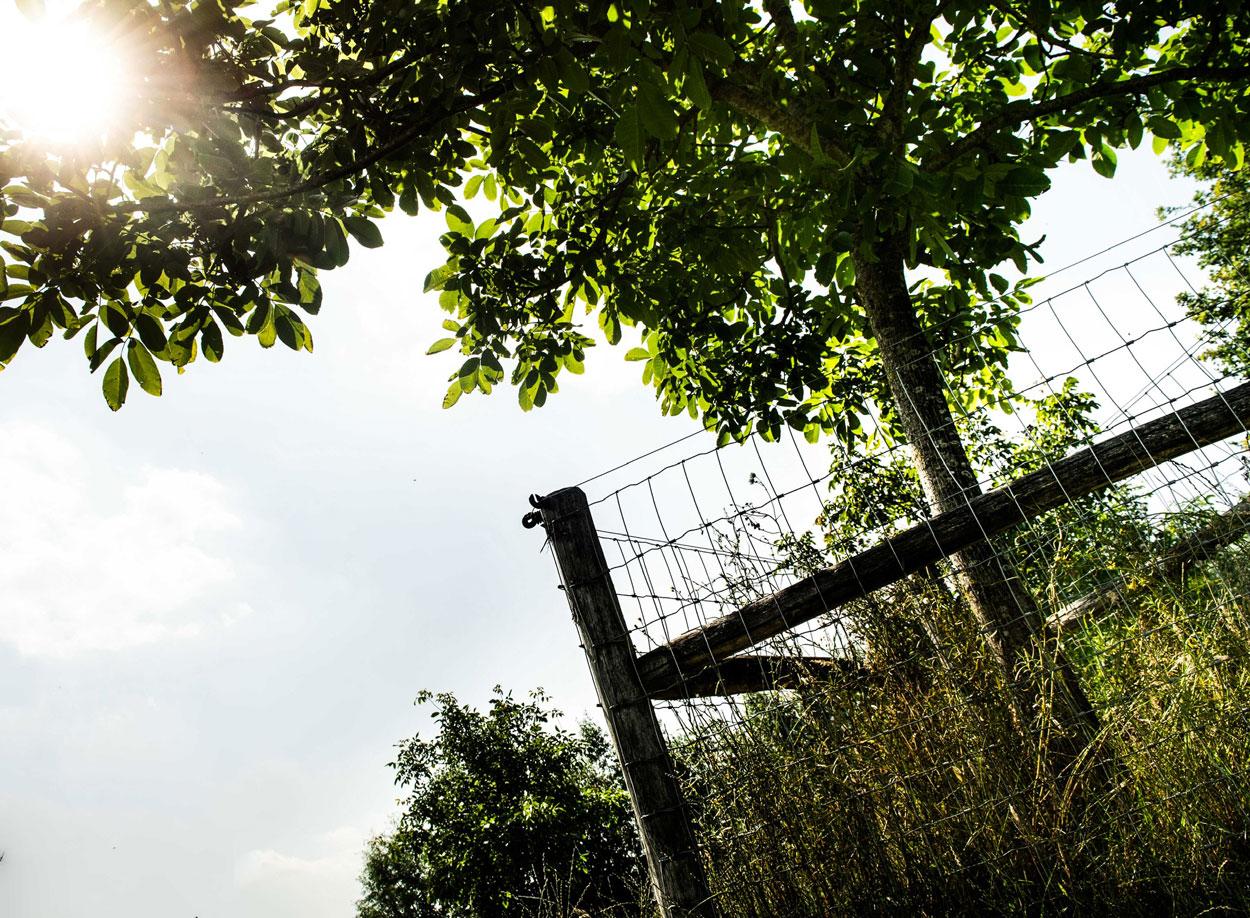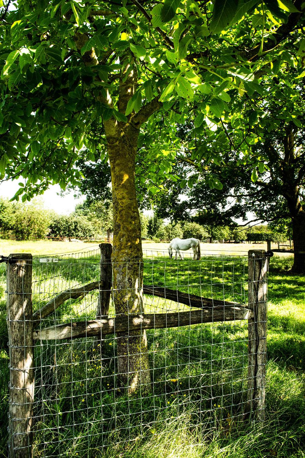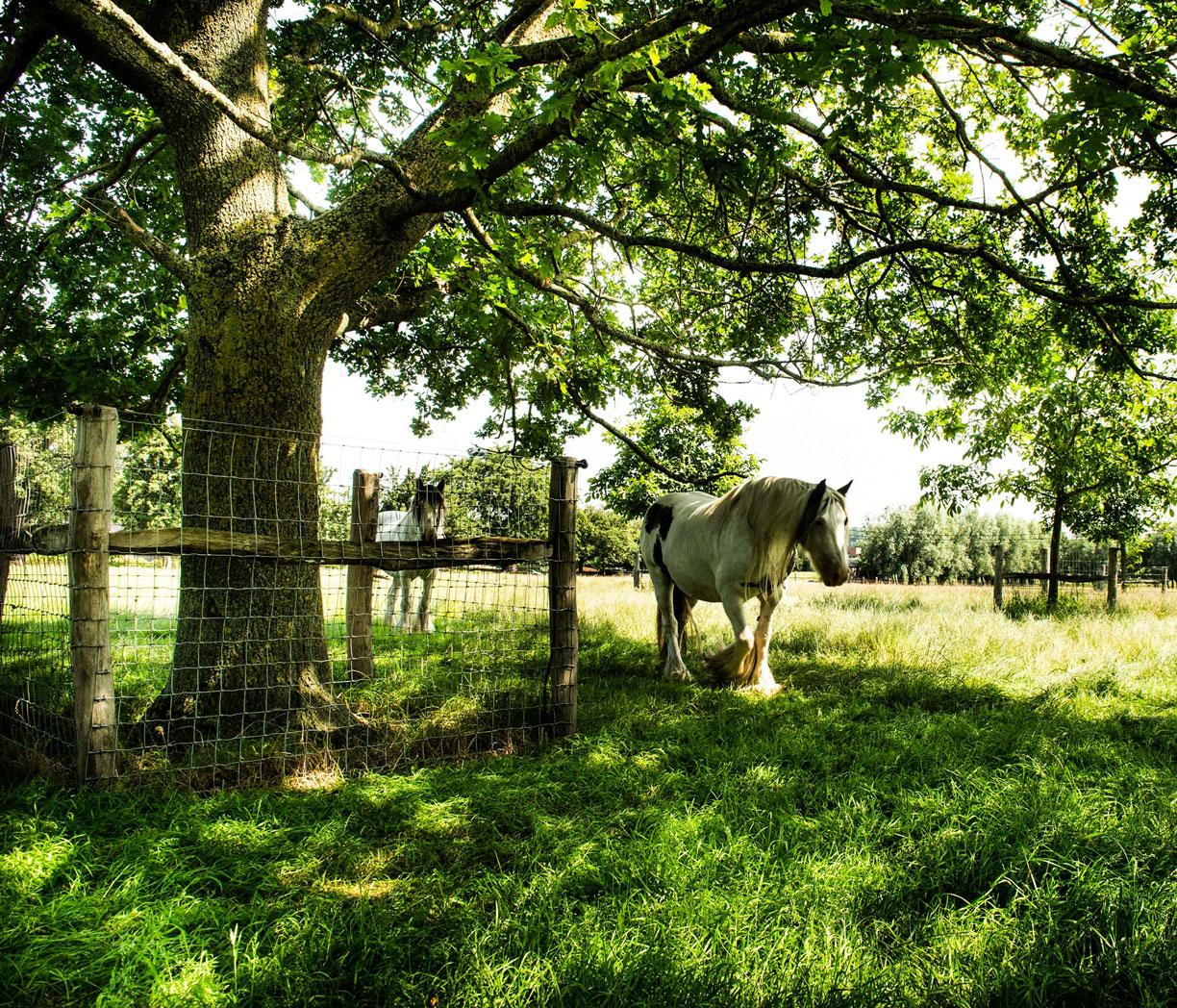Een subtiele draadgaasomheining met robuuste houten palen beschermt de boom zonder het landschap te verstoren. Dankzij een wire protect tot op de grond bescherm je de stam van de boom tegen grote én kleine grazers.