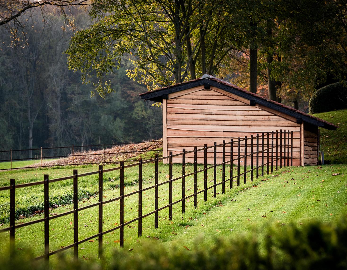 De klassieke schuilstalling kreeg een stevige upgrade. We slaagden erin een stevige constructie te ontwikkelen zonder tussenpalen. Niet enkel veilig voor je paarden, ook gemakkelijk in onderhoud voor jou. Doordat de zijwanden wat boven de dakconstructie uitsteken, krijg je de illusie dat de volledige stalling in hout is opgetrokken.