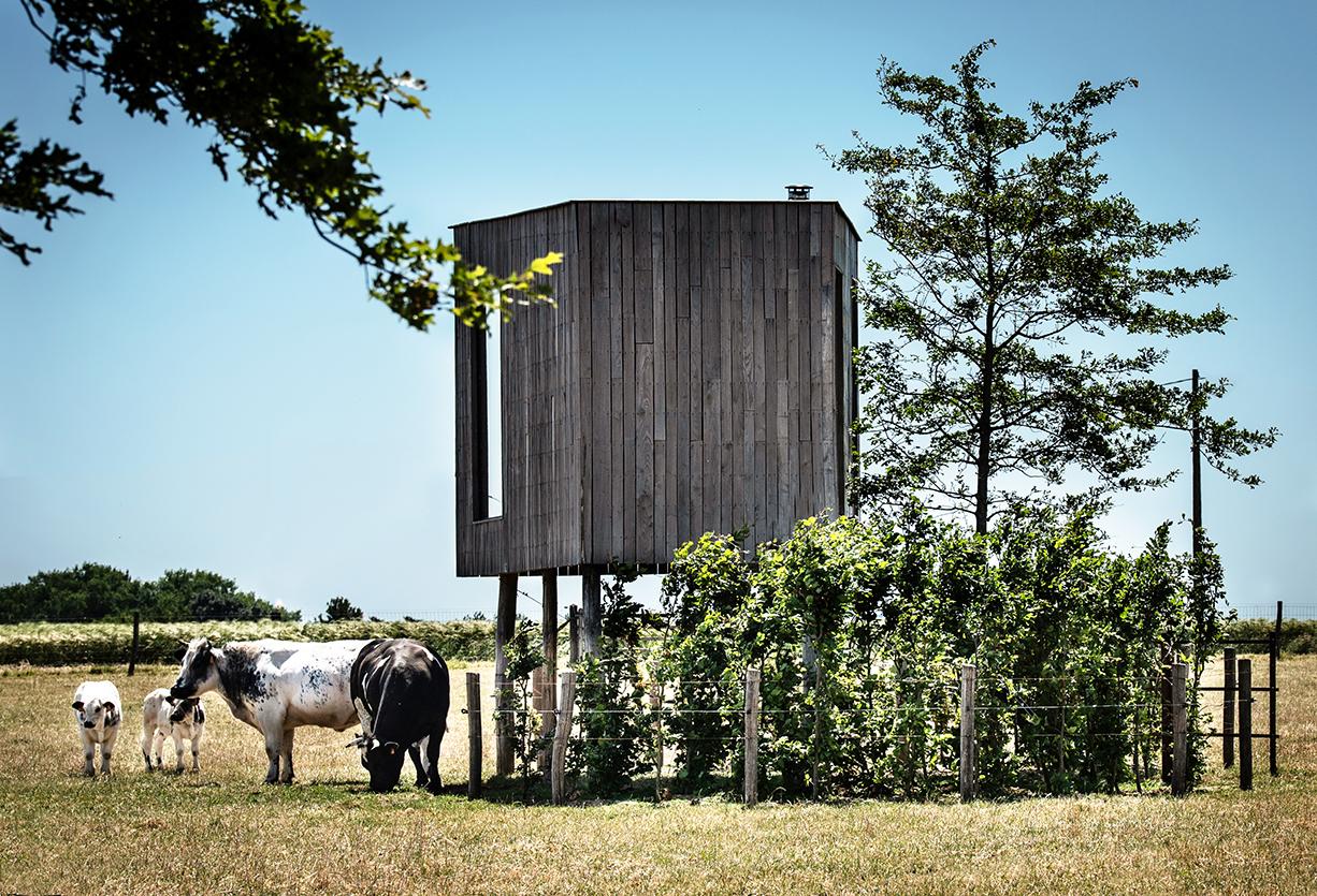 Een boomhut voor jou, een schuilstalling voor je dieren. Met deze combinatie genieten jij en je dieren optimaal van je weidetuin. Aan de buitenkant afgewerkt met een strakke gezaagde plank die natuurlijk vergrijst. De binnenkant richt je helemaal in naar je eigen smaak. De assysmetrische vorm geeft het geheel een extra dimensie.