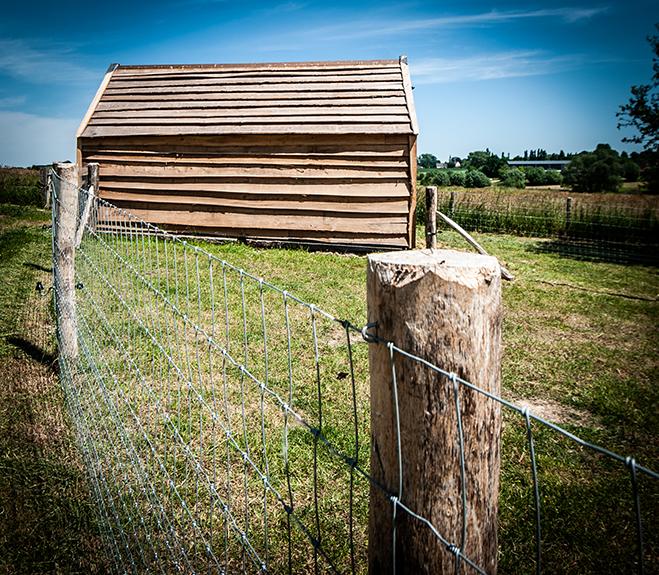 Wat dacht je van een multifunctionele stalling in de weide? Onderdak voor de schapen aan de ene kant, opslagruimte voor voeder en klein materiaal aan de andere. Voor deze constructie heien we 9 palen machinaal in de grond. De buitenkant is afgewerkt met natuurlijke schorsplanken, waardoor deze veldark qua look perfect aansluit bij de omgeving.