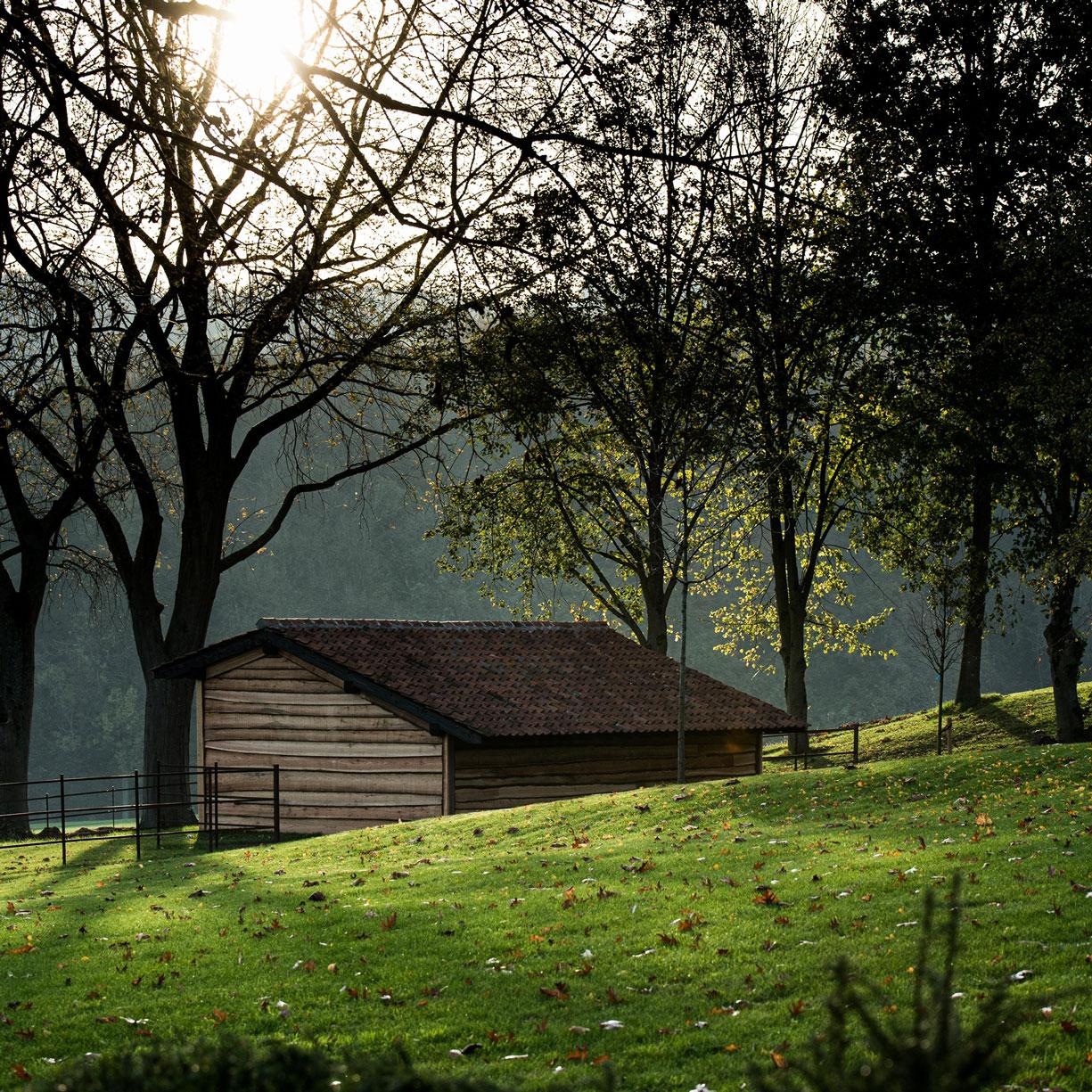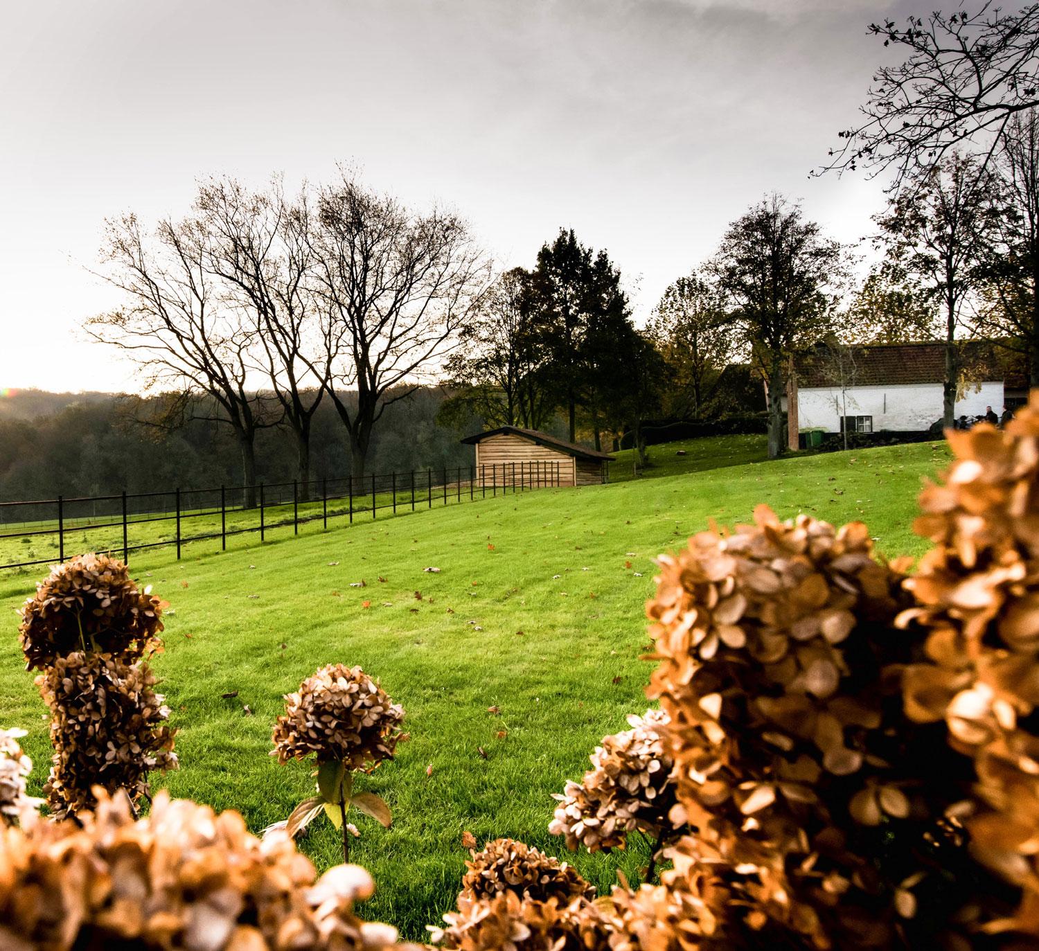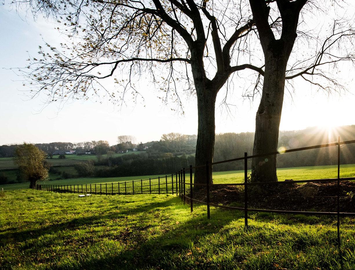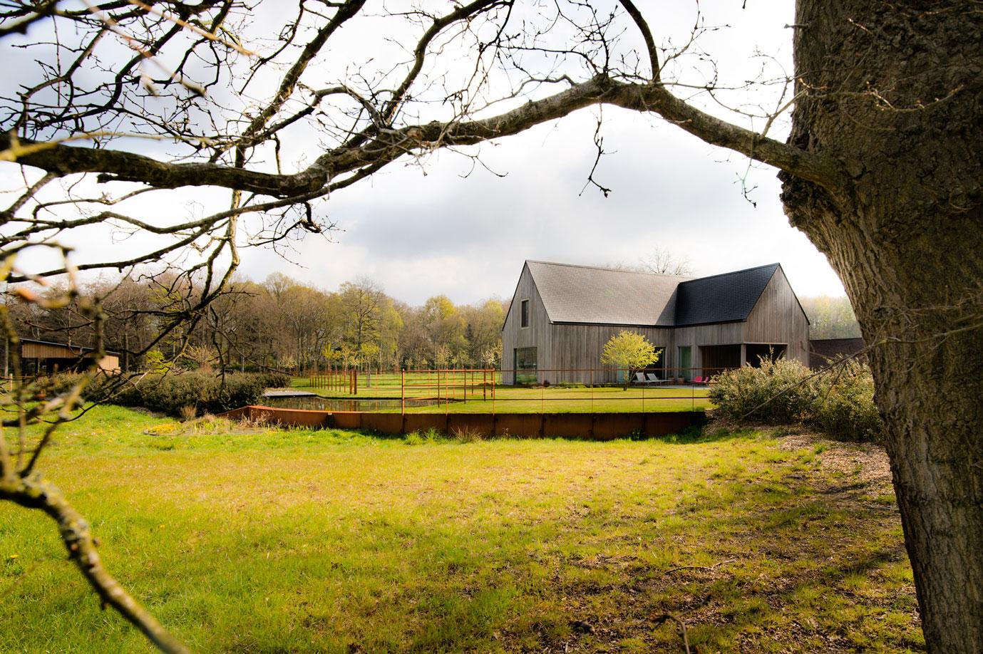 De natuur treedt op de voorgrond bij deze strakke hoeve omringd door een waardevol natuurgebied. De subtiele Cortûre Field Fence is niet alleen qua kleur, maar ook qua inplanting één met het landschap. Dankzij de glooiingen in de omheining lopen de tuin, de weides en het natuurgebied in elkaar over. De vorm en stijl van de stalling vormt een eenheid met de woning, waardoor ze opgaat in het geheel.
