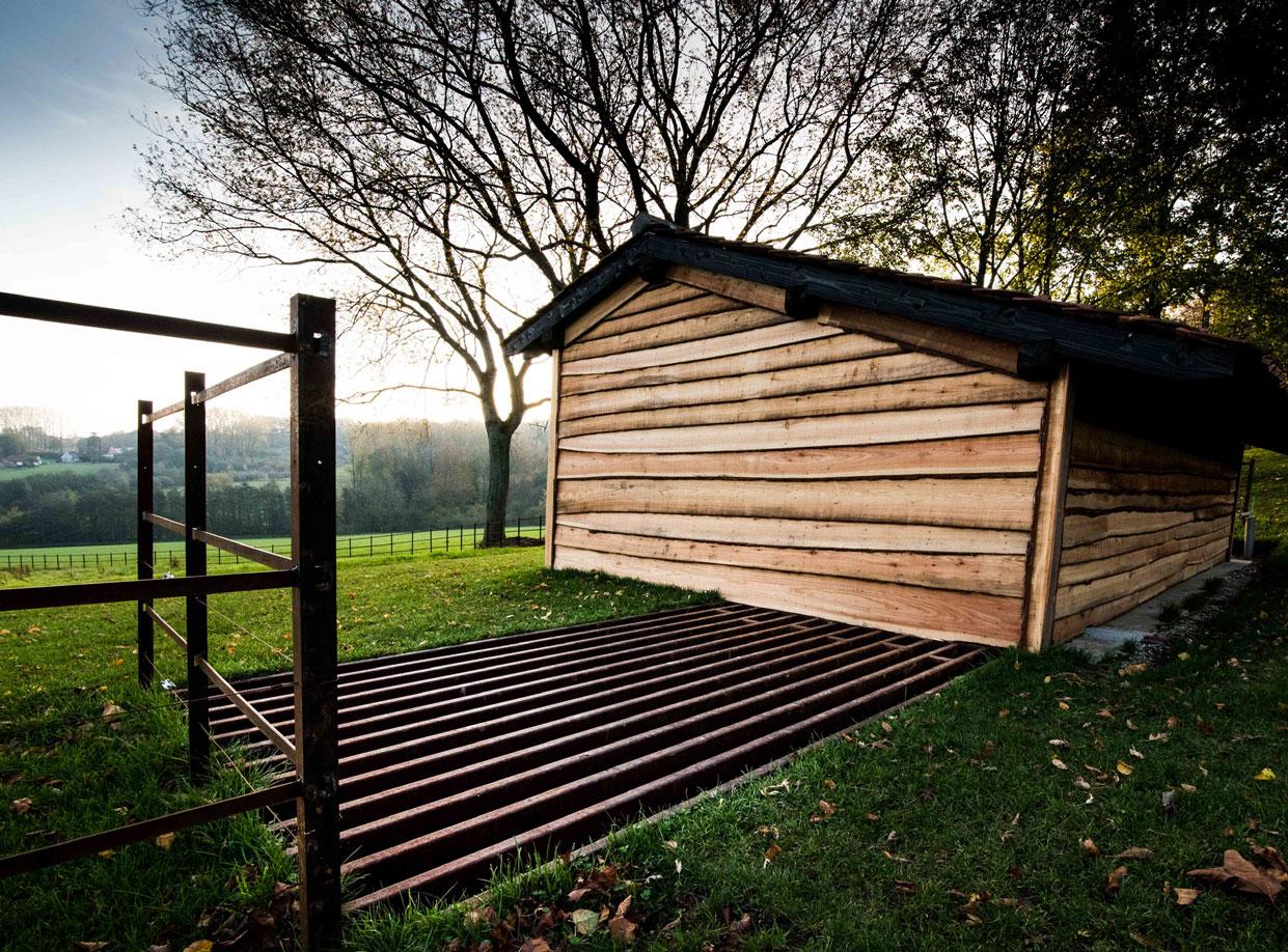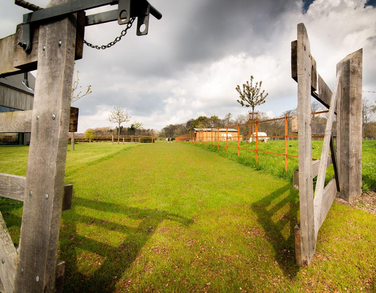 Deze stalling, gebaseerd op de Hollandse kapschuur, breekt het landschap niet, maar vormt er een geheel mee. Deze combinatie van architectuur en functionaliteit komt nog meer tot z’n recht dankzij de subtiele open Cortûre Field omheining en de Cattle Grid in plaats van een poort.