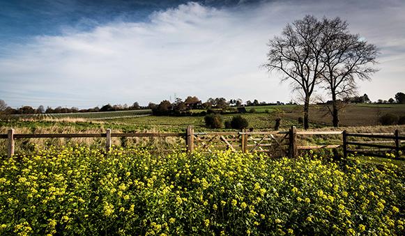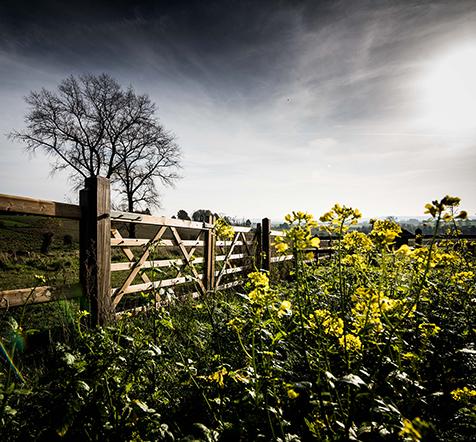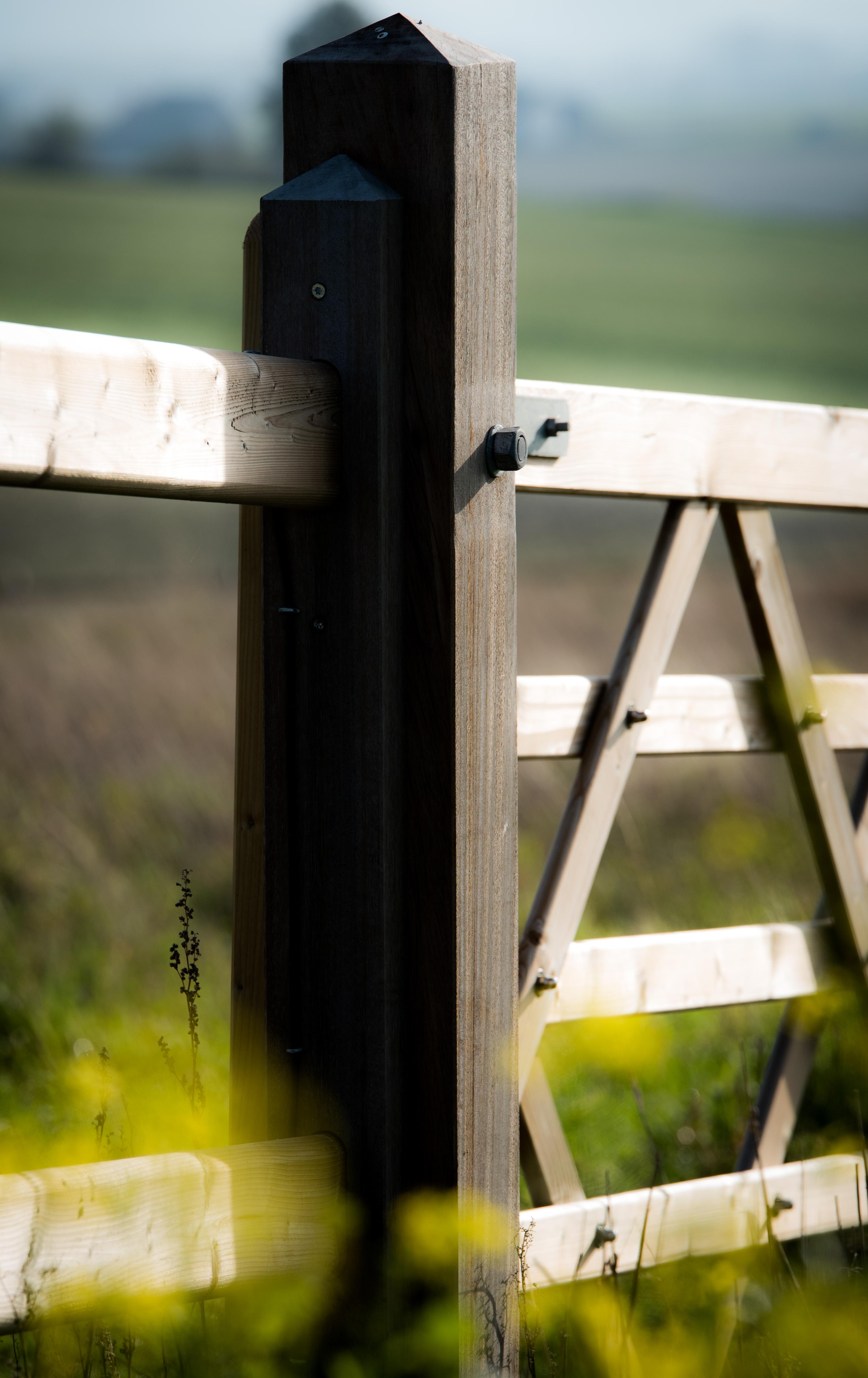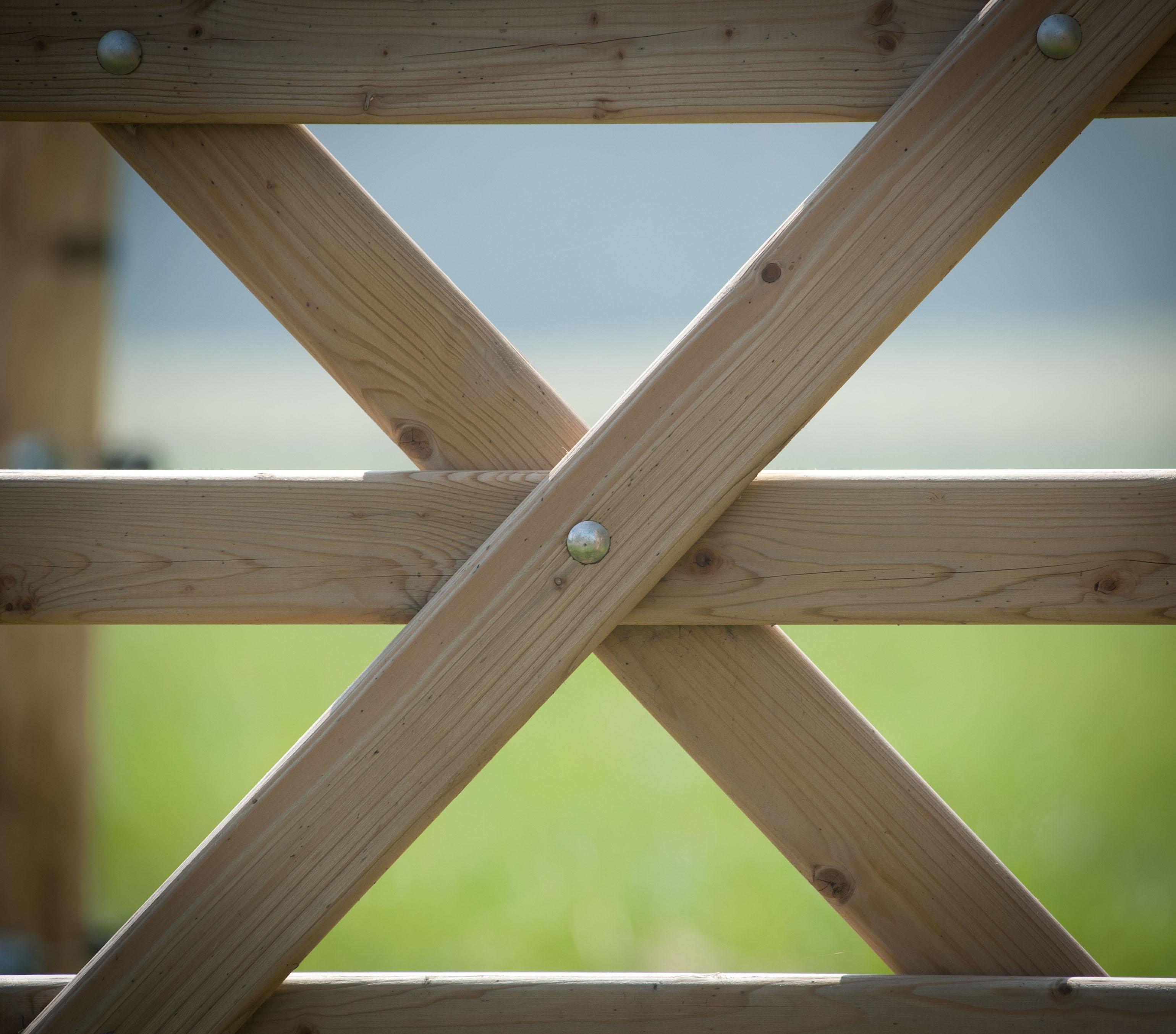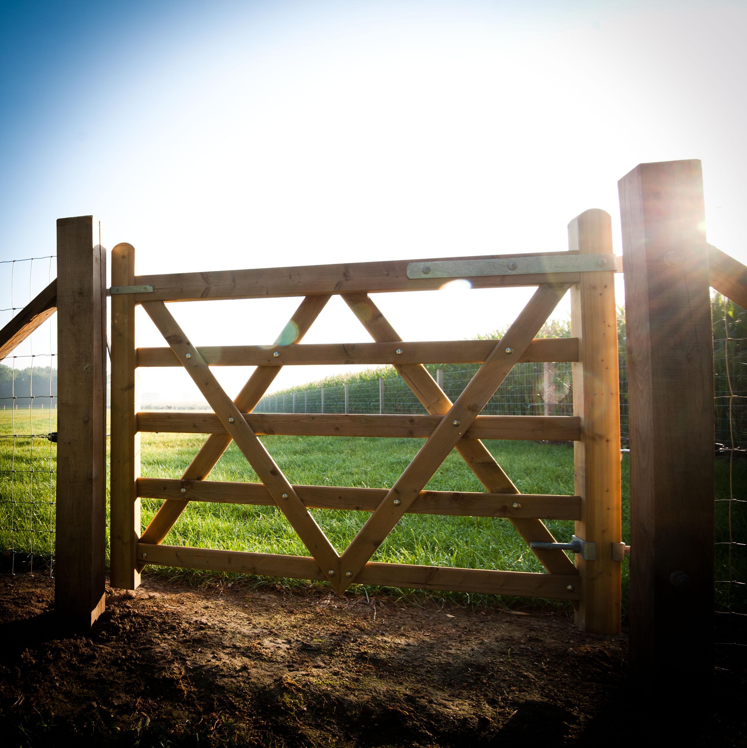 De bruine kleur en de hoogte van de liggers van deze poort sluiten perfect aan op die van je Cortûre Field Fence.