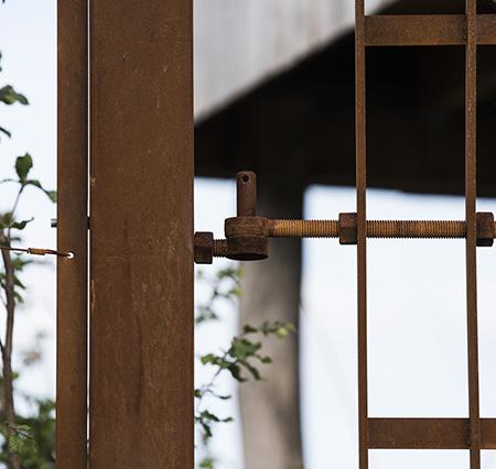 Zo vormen poort en omheining een onafgebroken geheel dat opgaat in het landschap.
