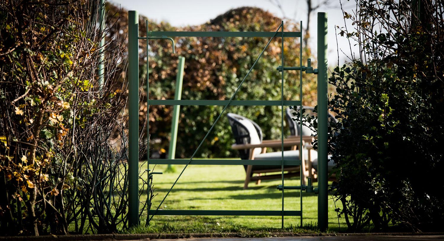 De lijnen van je cortûre fence lopen door in de poort, wat zorgt voor rust.